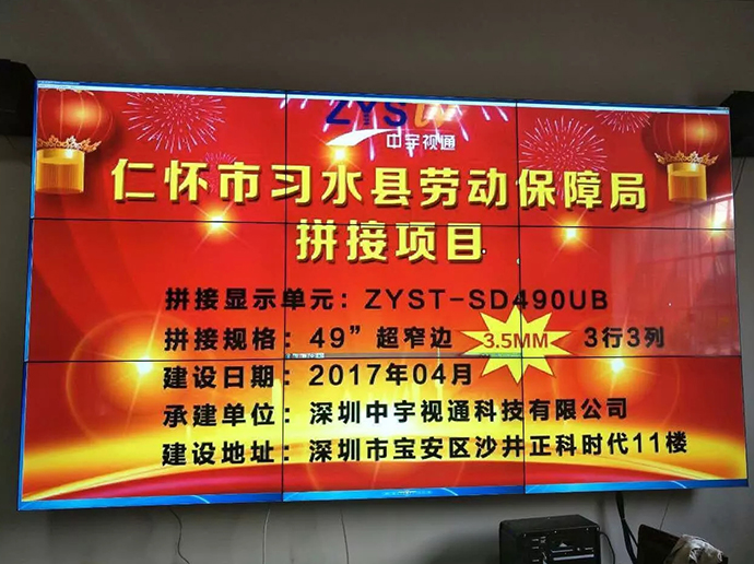 仁懷市習(xí)水縣勞動(dòng)保障局3*3 49寸拼接屏項(xiàng)目